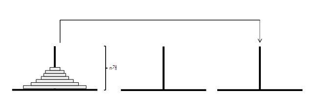 위 그림에서 우리는 n개의 원판을 세번째 막대(?)에 옮길려고 합니다.