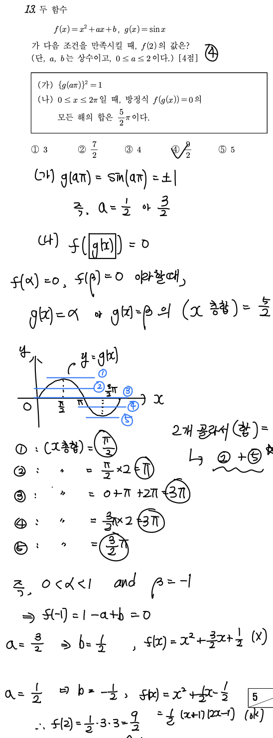 즉, (g(x) = α의 근의 합) + (g(x) = β의 근의 합) = (5/2)ㅠ