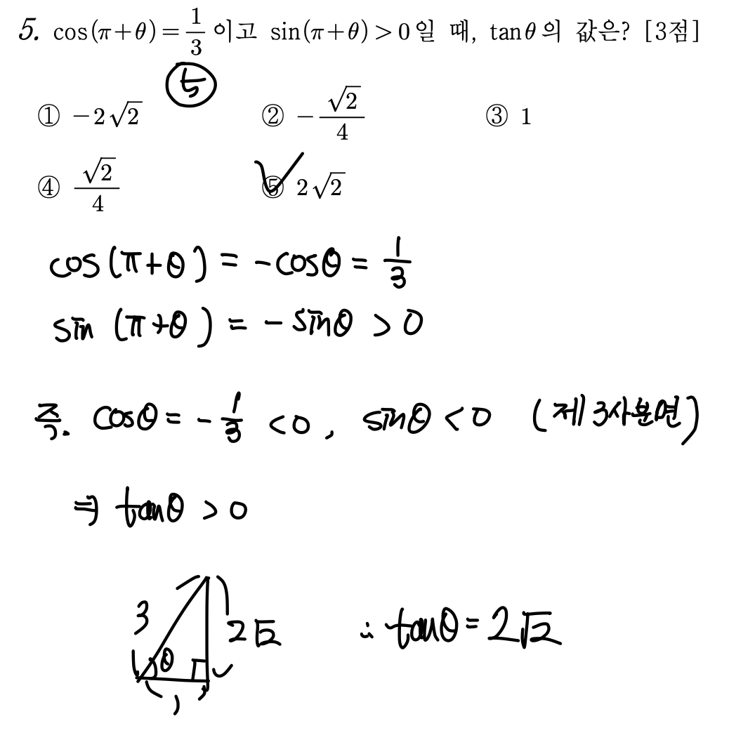 => 삼각함수를 간단히 표현하고, 각이 제 3사분면임을 파악하는 것이 중요하다.