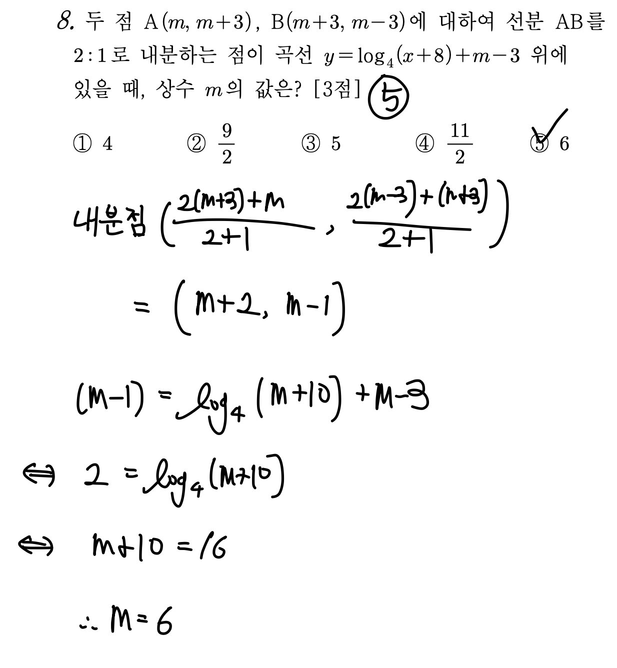=> 내분점 공식을 까먹지 않았다면, 로그 방정식을 잘 풀기만 하면 된다.