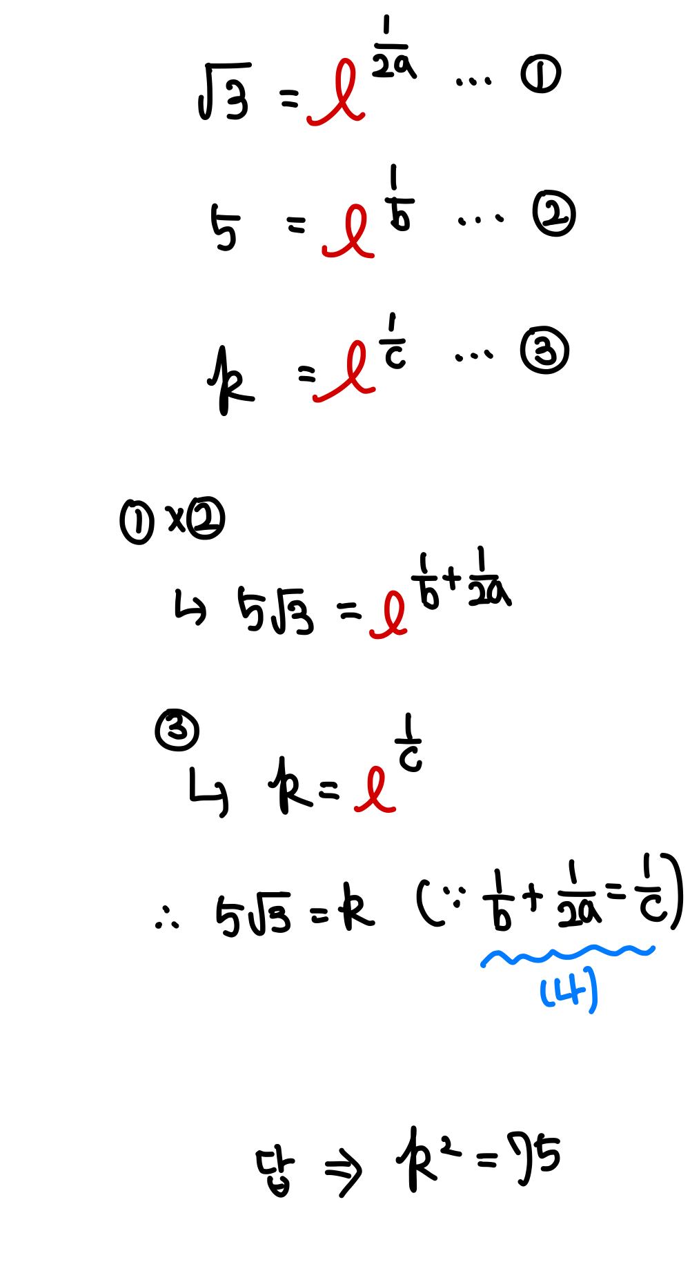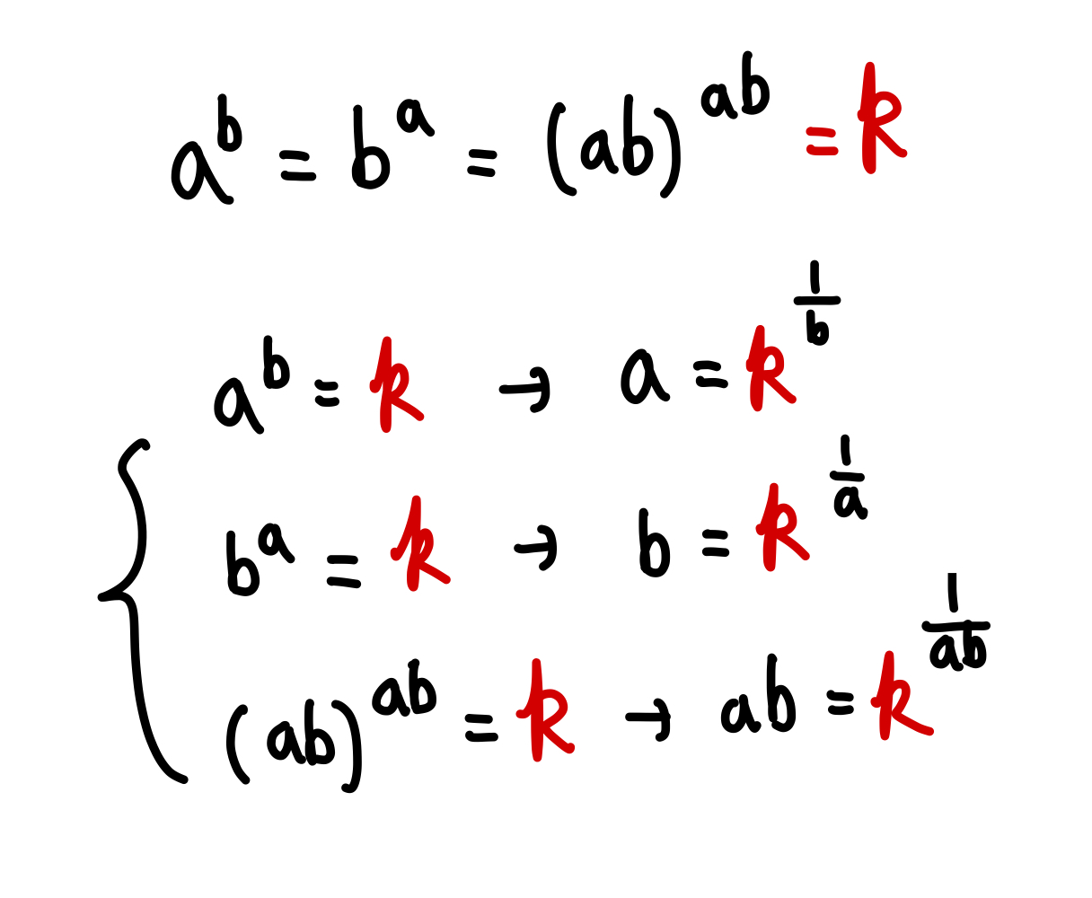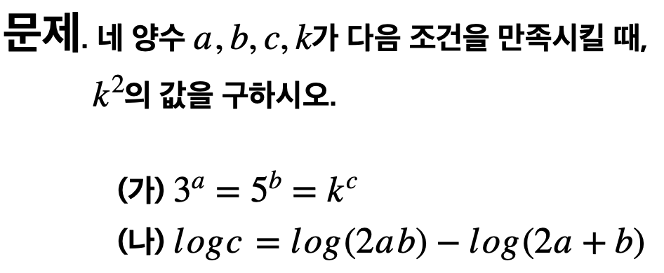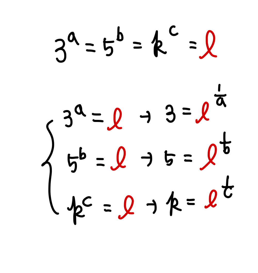 k를 도입한 후 위 그림 처럼 1. 식을 쪼갠 후 2. 밑이 k인 지수식으로 바꾸어 줍니다