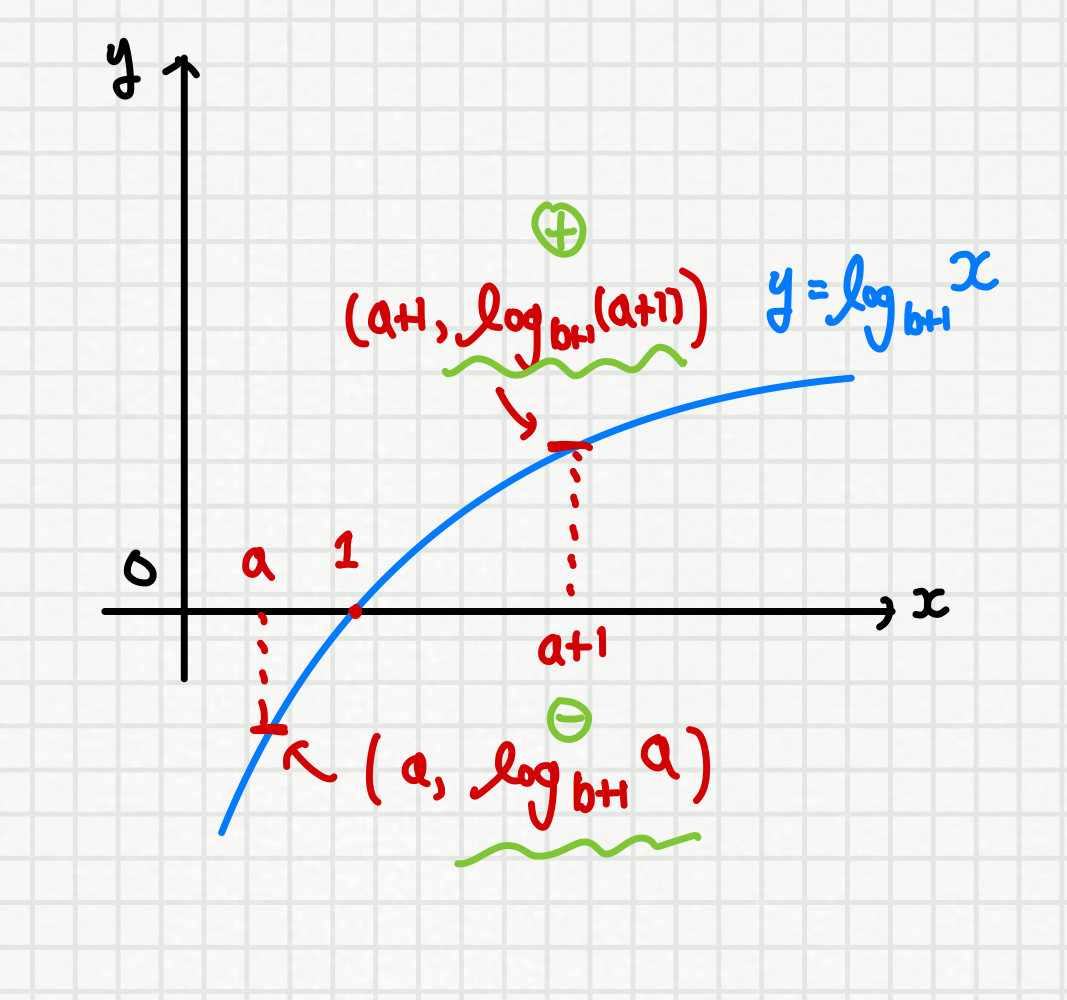 이때, b > 0 -> b > 1 이므로 증가하는 로그함수를 그려보면