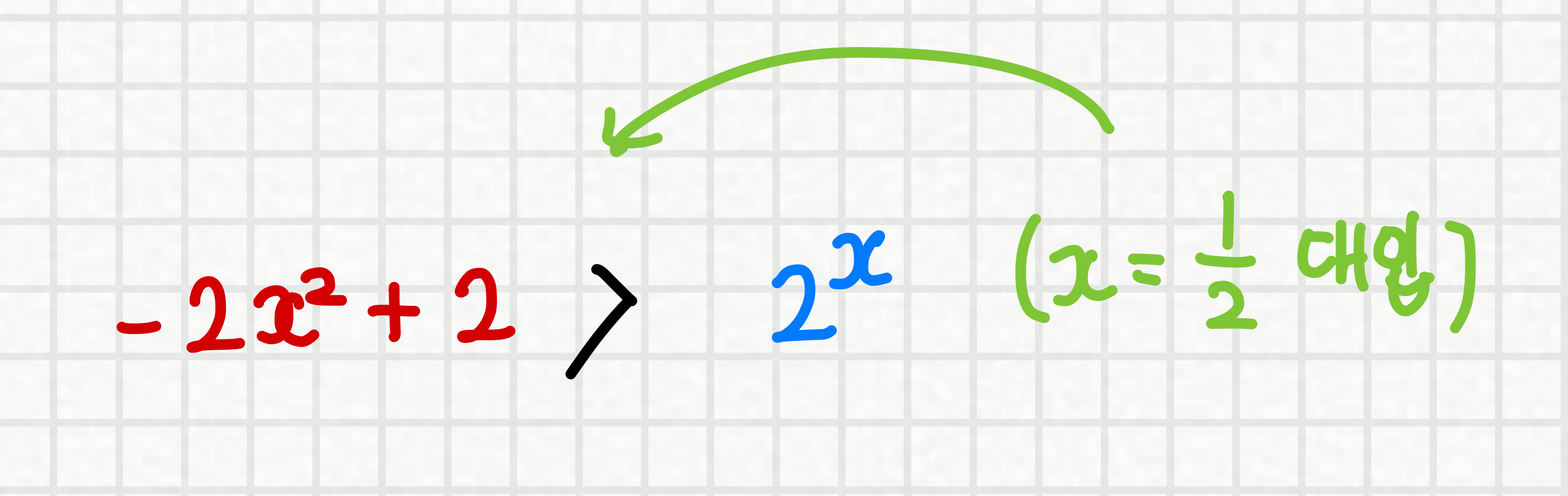 위 부등식이 참이라고 가정해보면 그래프 위에 다음과 같이 표시할 수 있습니다.