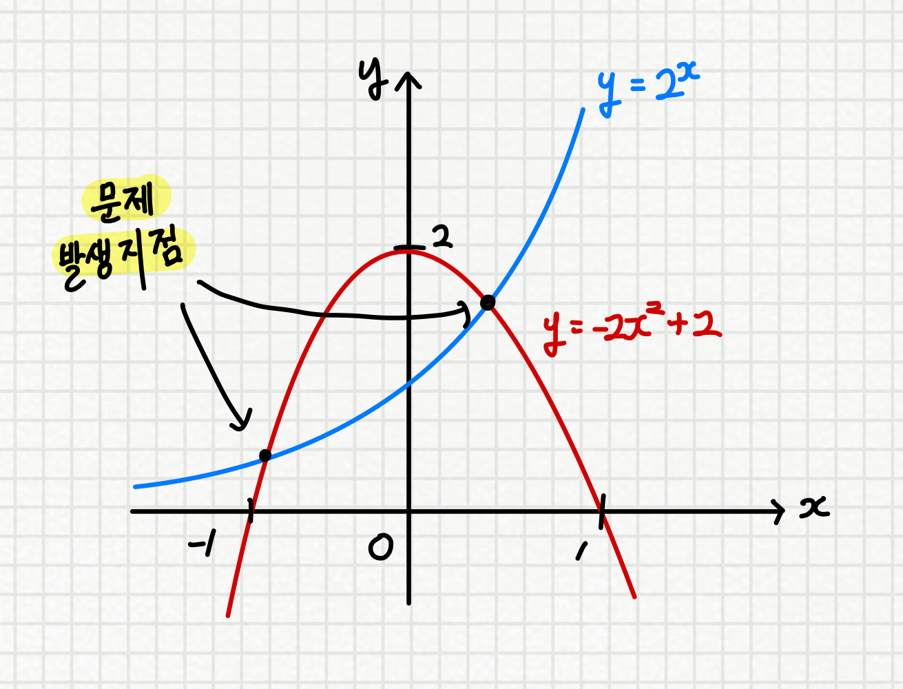 위의 예시의 경우 -1 < x < 1 / 0 < y < 2 를 기준으로 그래프를 확대해서 그리면 될듯하군요