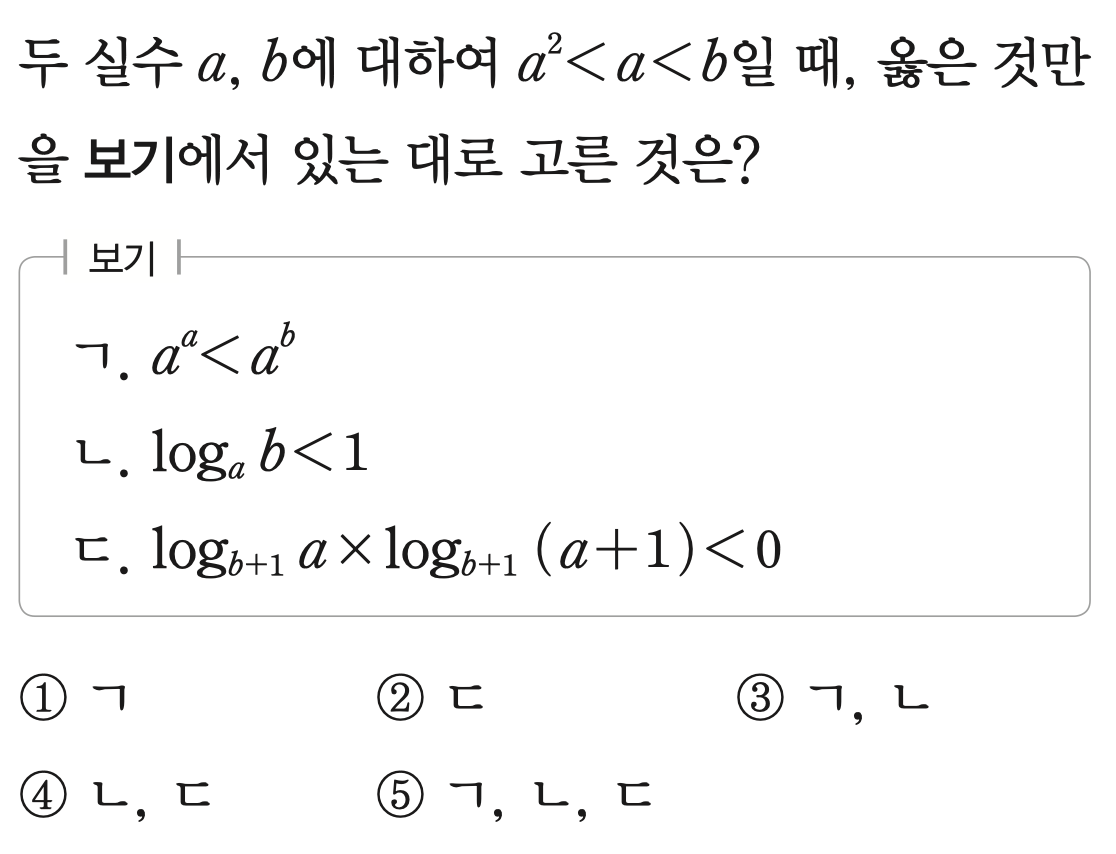 그런데, 문제 조건에서 a < b 이므로 ㄱ은 틀렸습니다.