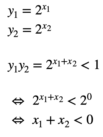 모두 지수함수의 위의 좌표이므로, 지수법칙을 떠올려서 다음과 같은 식을 쓸 수 있습니다.