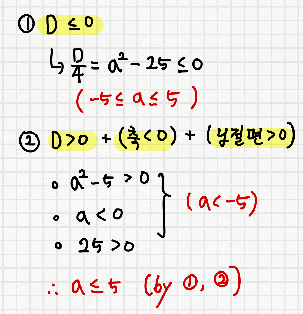 (2) 판별식 + 축과 절편의 위치를 쓰는 경우
