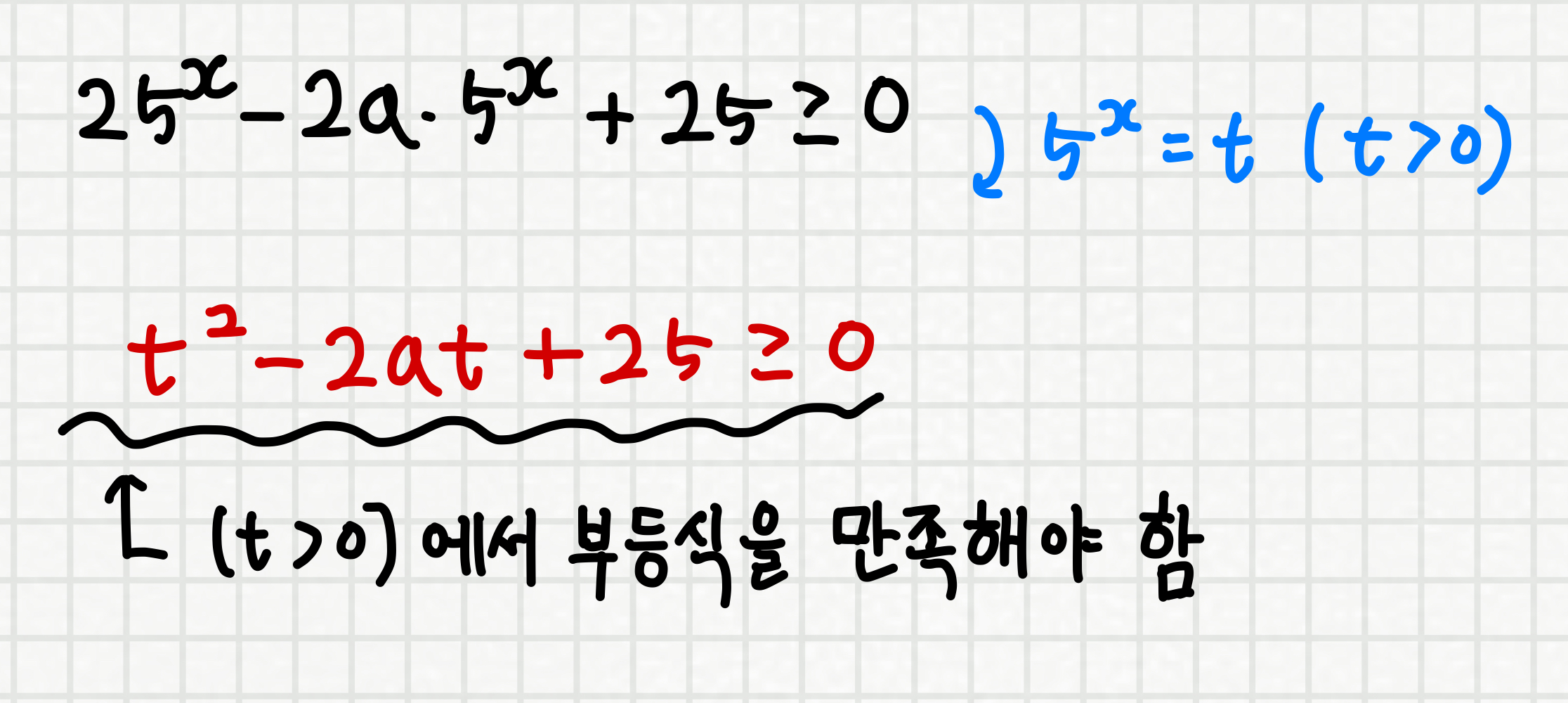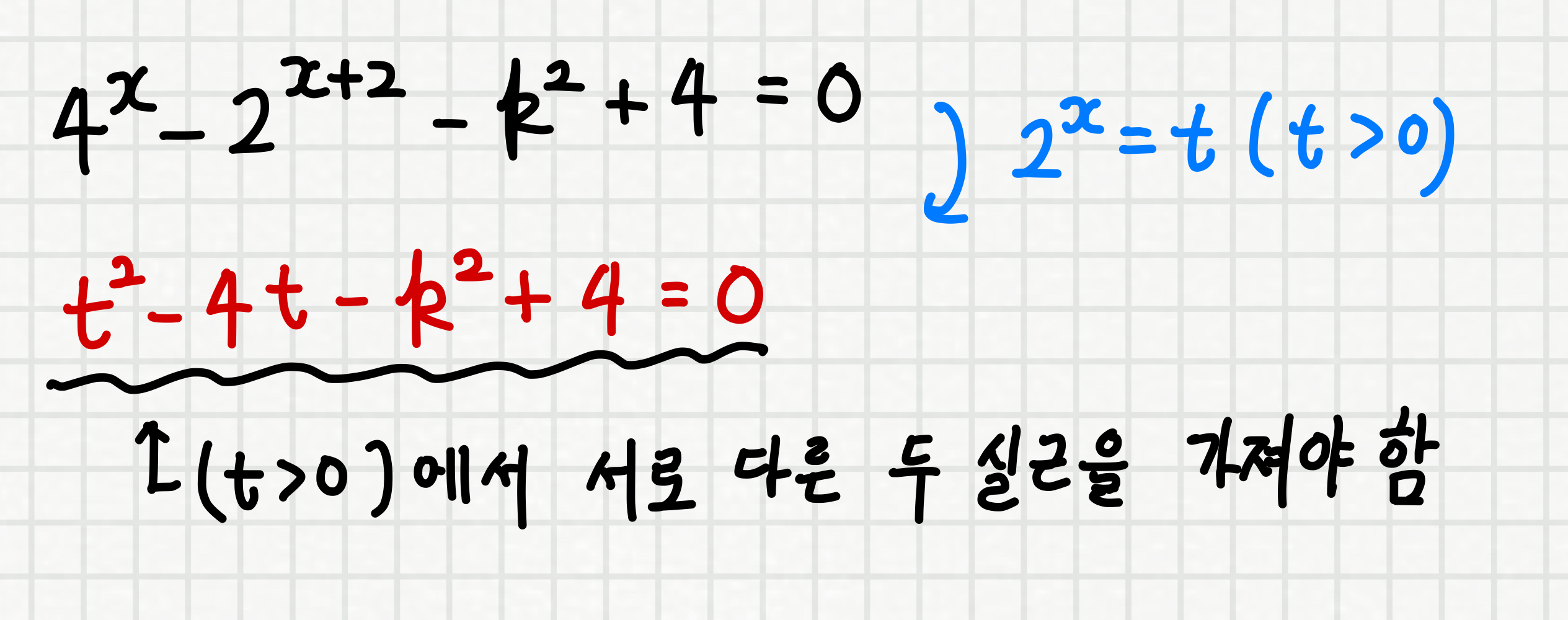 처음에 보여드린 문제에서, 치환을 한 뒤에는 방부등식의 실근에 대한 조건을 적용해야 합니다.