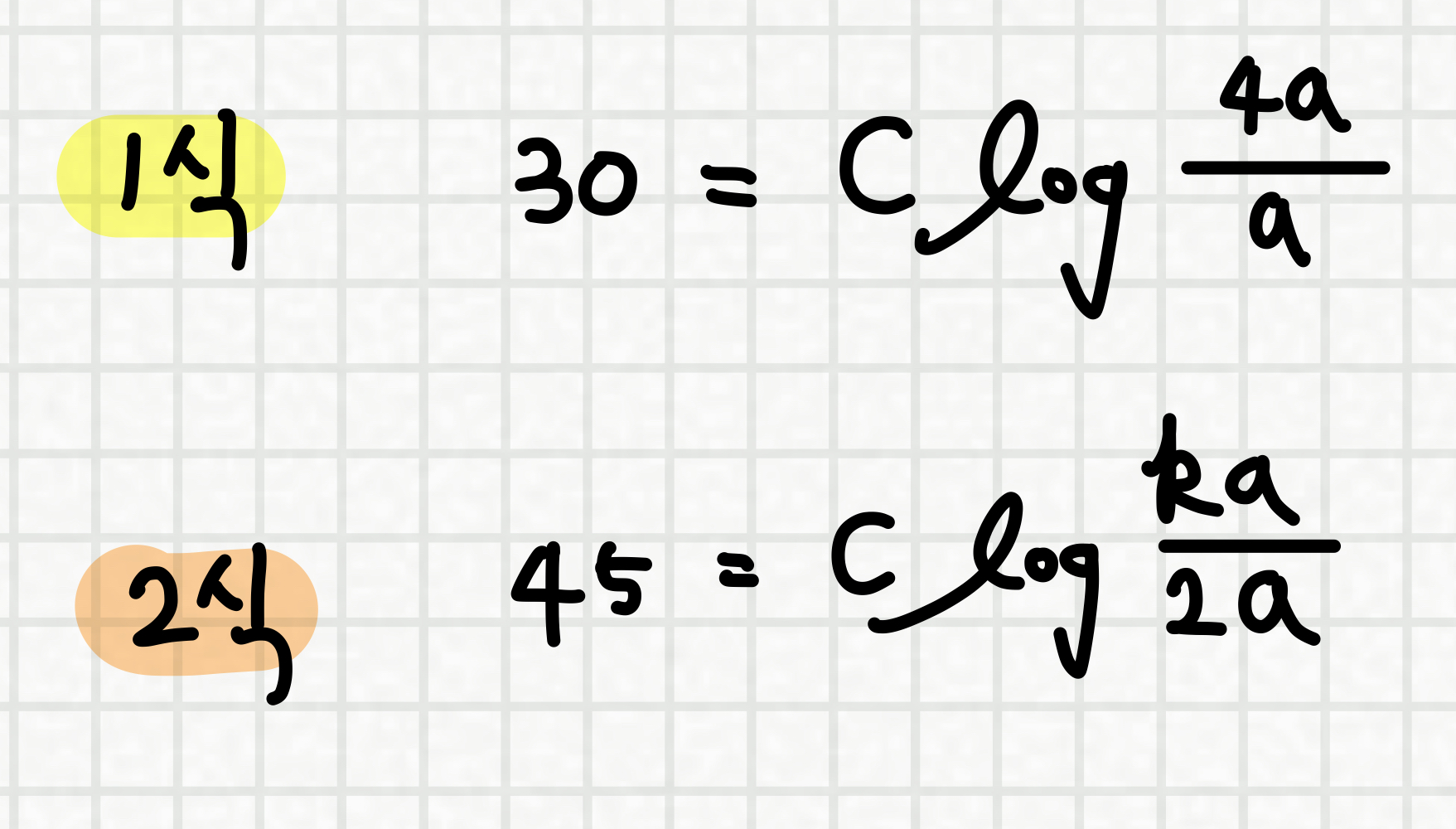 따라서, 이를 바탕으로 아래와 같은 식을 쓸 수 있습니다.