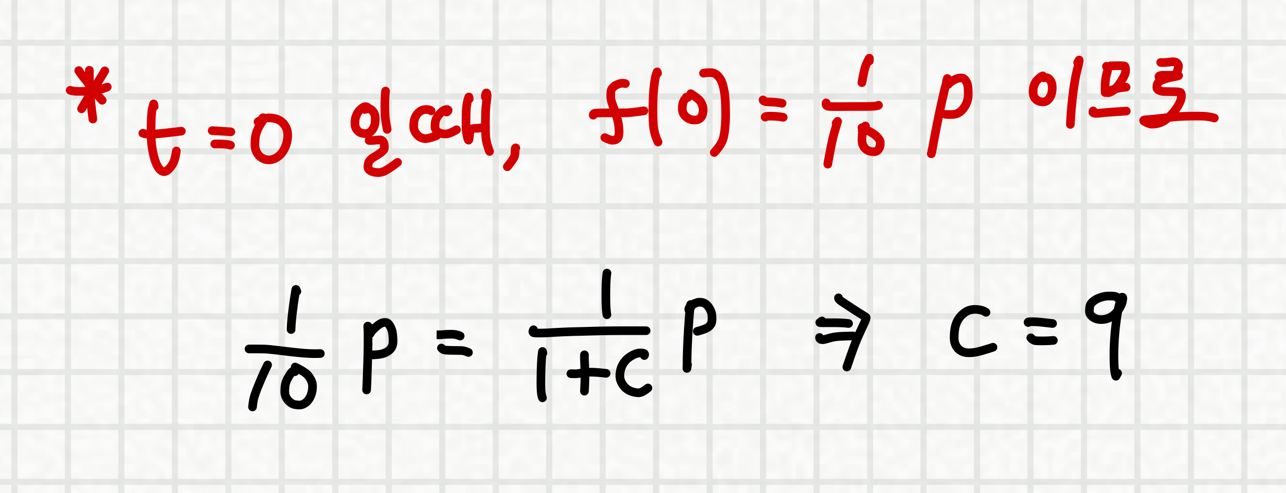*특이하게 이문제는, t = 0 일때 조건이 나와있어서 이를 이용하여 c를 구해두어야 합니다.