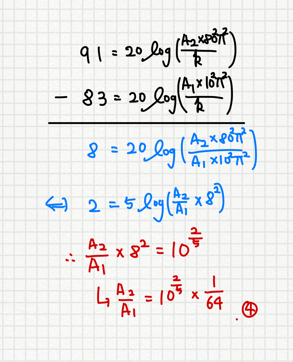 A2/A1을 구해야 하므로, A2/A1를 제외한 다른 미지수들은 모두 없애야 합니다.